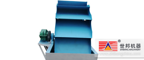 工(gong)作時,電機通(tong)過三角帶、減(jian)速機、齒輪減(jian)速后(hou)帶動(dong)葉(xie)輪緩慢轉(zhuan)(zhuan)動(dong),砂石有給(gei)料(liao)槽進入洗槽中,在葉(xie)輪的(de)帶動(dong)下翻滾(gun),并互(hu)相研磨(mo),除去覆蓋(gai)砂石表(biao)面的(de)雜質,同時破壞(huai)包覆砂粒的(de)水汽(qi)層,以利于脫水;同時加水,形(xing)成強大水流,及時將雜質及比重(zhong)小的(de)異物(wu)帶走(zou),并從(cong)(cong)溢出口洗槽排出,完成清洗作用(yong)。干凈(jing)的(de)砂石由(you)葉(xie)片(pian)帶走(zou),砂石從(cong)(cong)旋(xuan)轉(zhuan)(zhuan)的(de)葉(xie)輪倒入出料(liao)槽,完成砂石的(de)清洗作用(yong).